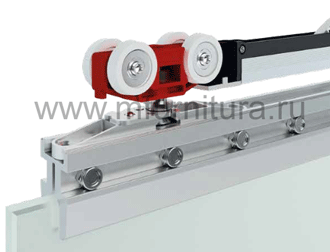 Данная система комплектуется доводчиками. Доводчик гасит удар и обеспечивает плавное задвигание до конечной точки открытия или закрытия.