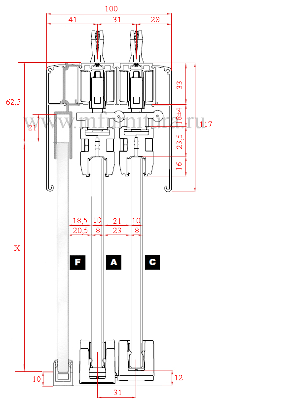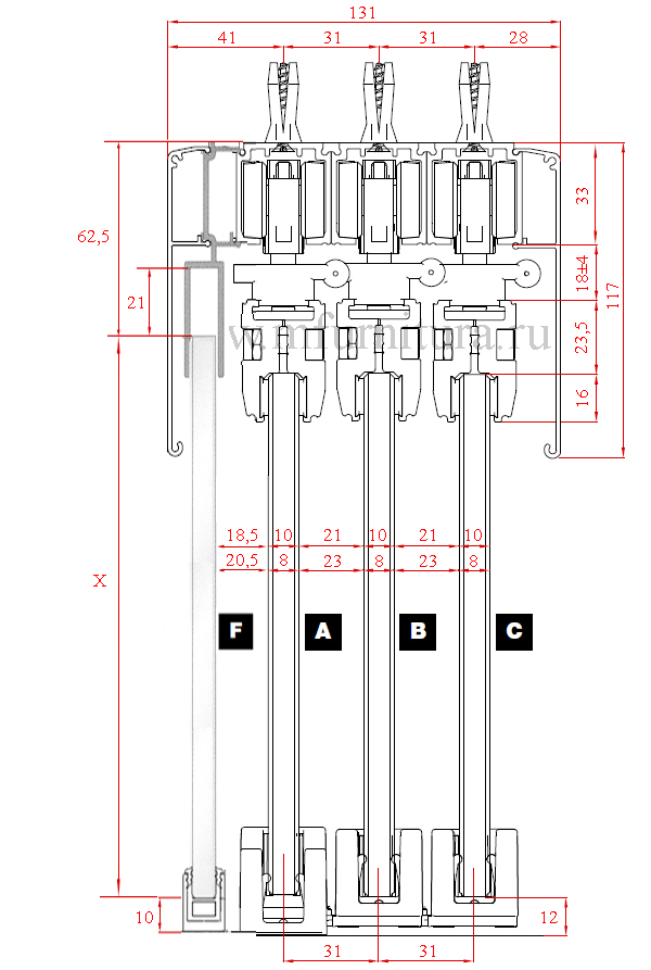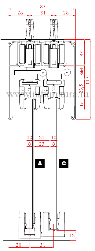 Данная модель по желанию может комплектоваться профилем арт. 1360. Этот профиль выполняет роль фальшпанели, которая закрывает направляющую с механизмами и щель между верхним торцом стекла и нижним краем направляющей арт. 1280. |