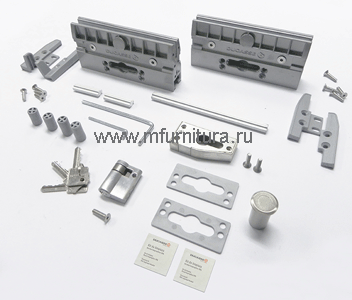 | Комплект зажима стекла с закрыванием на завертку. Устанавливается на нижнюю часть каждого сдвижного полотна для его фиксации. Под завертку в полу устанавливается ответная часть.