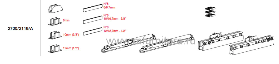 2700/2119/А – Полный комплект механизмов и профилей на одностворчатый проем с одним раздвижным полотном. |